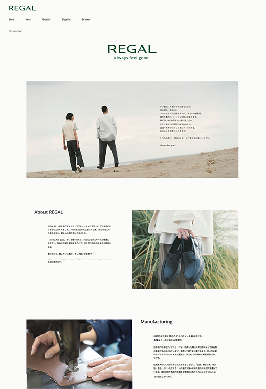 調査から分かったターゲットの欲求は、これまで考えてきたような、革の味わいを楽しむ頑丈で伝統的な靴ではなく、生活の質を上げてくれる靴。生活の質そのものの向上なのでした。こうしてREGALは、今までの自 らの思い込みを更新して、ターゲットとするお客様に「Always feel good」を約束するブランドに舵を切ることになりました。ブランドアイデンティティもこの約束を基に刷新し、「森の中で深呼吸するような心地よさ」を感じるブランドと定義して、製品はもちろん、店舗デザインやコミュニケーション、ECやデジタル施策などにもこのテーマに沿ったものと方向性を定めました。