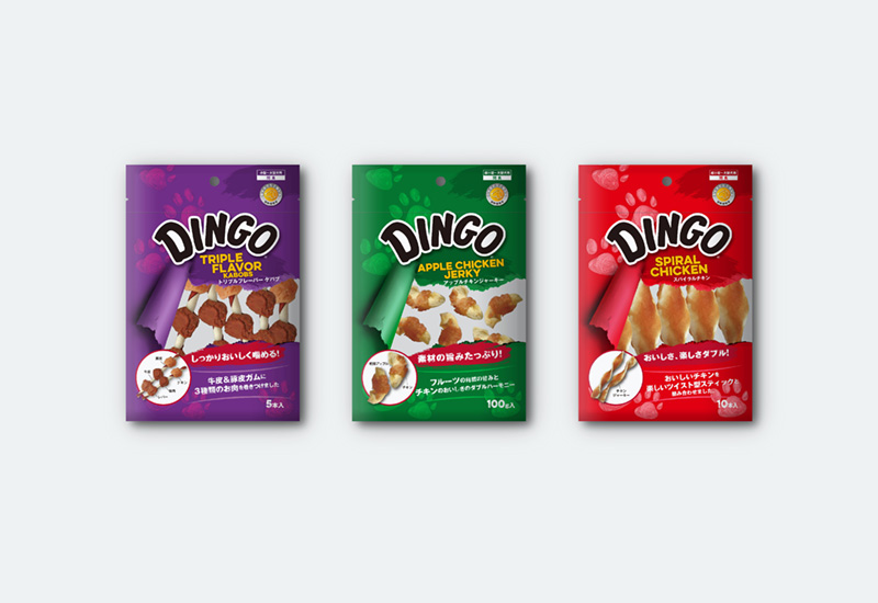 スペクトラム ブランズ ジャパンの依頼を受け、バニスターは、犬用おやつブランド「DINGO」の商品パッケージデザインを開発しました。